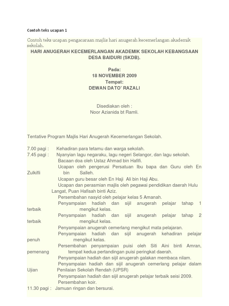 Teks Ucapan Sempena Hari Anugerah